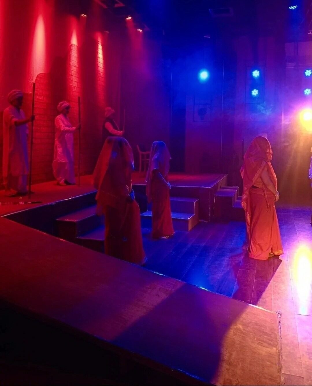 Actors perform their scenes with complete technical setup